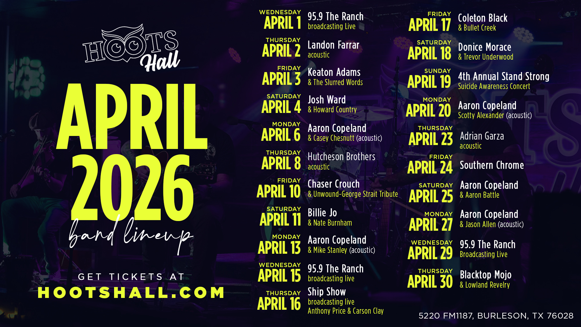 April at Hoots Hall: Your Guide to the Best Texas Country & Cold Beer